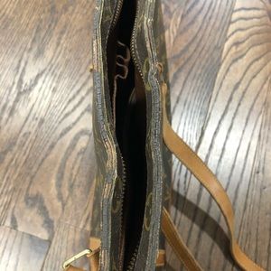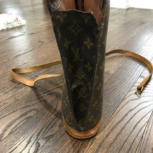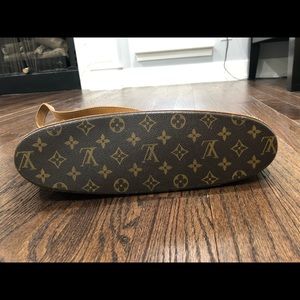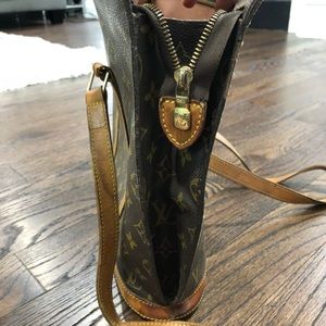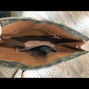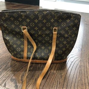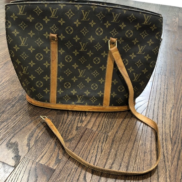 Louis Vuitton Babylon with a few defects, first the strap on one side has broken off, canvas looks good all the way around the bag and on the bottom, the inside pockets are dirty and peeling with an ink stain in one pocket. The zipper works great, on top of the bag near zipper is peeling(pictured) and on the top of one of the sides the stitching has come loose so the bag is pulling apart(pictured)