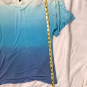 Cotton bebe top that fades from white to light blue to dark blue. Scoop neck. Very light for summer ๐ŸŒค