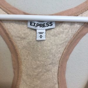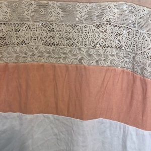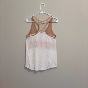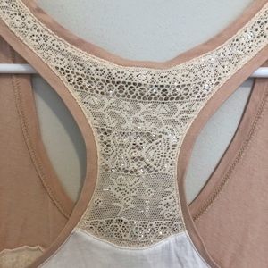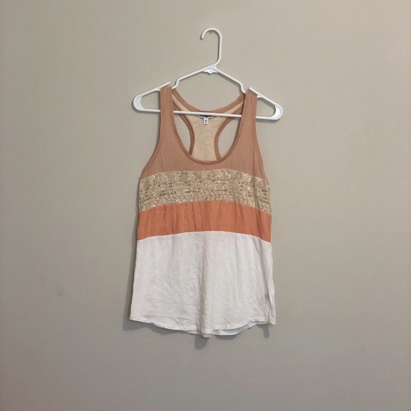 Such a cute tank! There are sequins inside the lace to give it a bit of shimmer. Price is negotiable. Just make an offer.