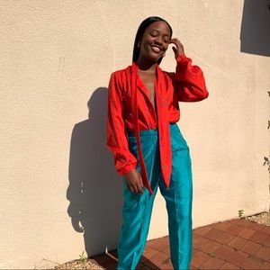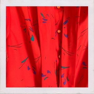 Vintage abstract print blouse with tie and (6) single buttons.
