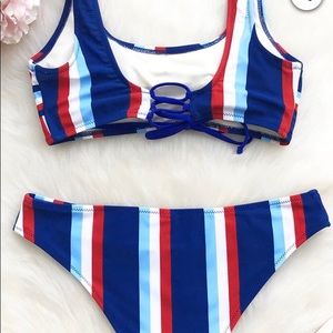 Blue and red striped bikini. Size M. NWOT. Never worn.