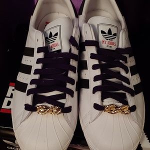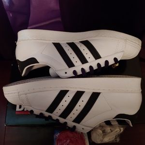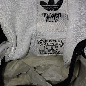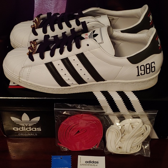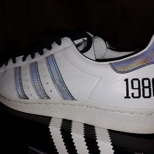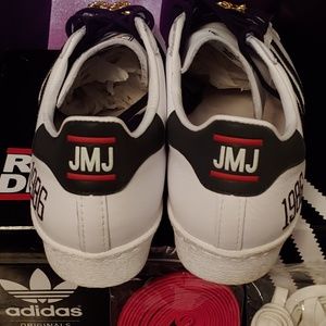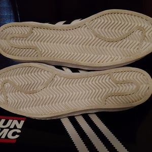 Run DMC Adidas Superstar Shoes. Excellent condition .Worn a few times less than 10 hours total. Comes with OG BOX and all original accessories pictured. Please let me know if you have any questions. Thanks