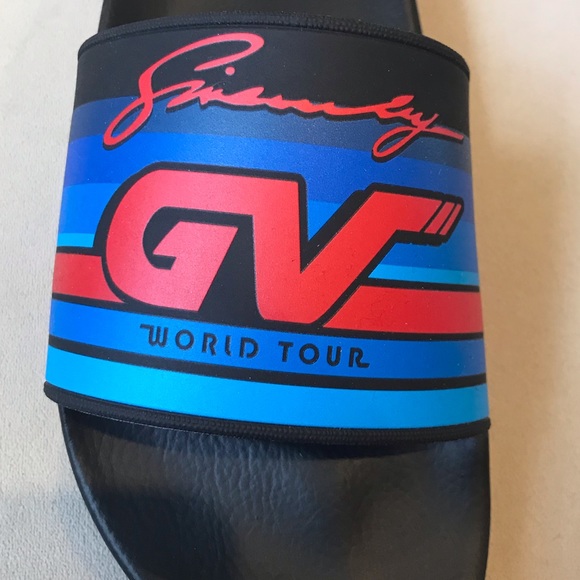 You are viewing a pair of Givenchy slides, these slides are brand new and 100% authentic. They are a size 12, 45 European. They are 100% rubber and made in Italy. They come with a dust bag and original box. NO TRADES, ALL UNREASONABLE OFFERS WILL BE DECLINED!!