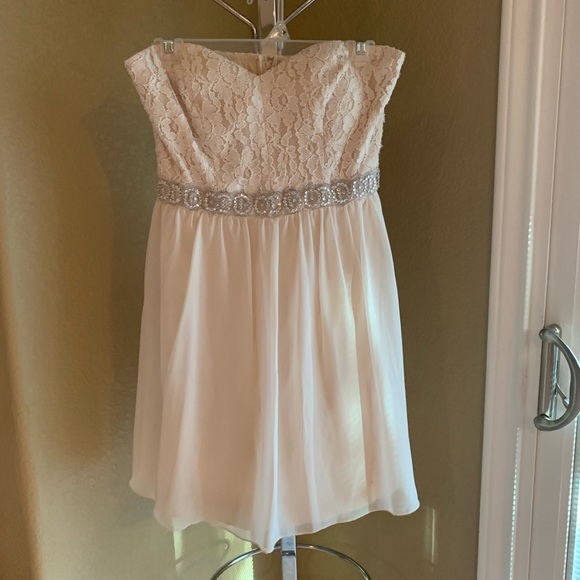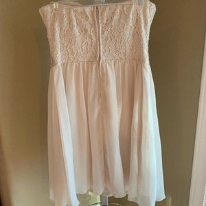 Super cute strapless dress. Fits like a glove! I wore it to my sophomore year homecoming (only worn once for a few hours) great condition!