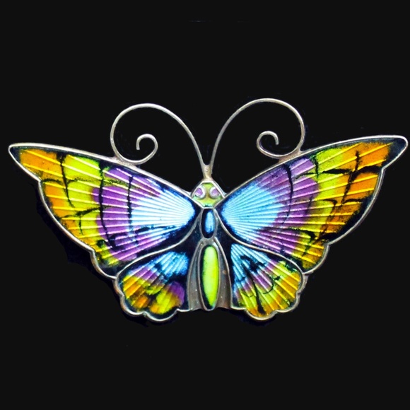 Vintage. Rare color combination. Gold over Sterling. David Andersen Butterfly Pin. Signed. Numbered 935s Norway. Mint conditio