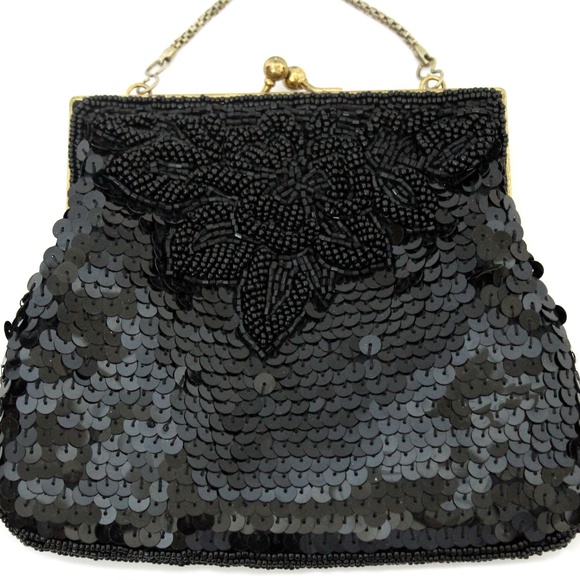 Excellent condition. A true La Regale vintage collectable. Beautiful flower beading. No missing beads. Measures: 7 inches across by 5 3/4 inches. Gold chain strap is 22 inches long.