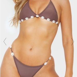 Pretty little thing brown shell bikini. Brown / tan triangle bikini set with shell detail.