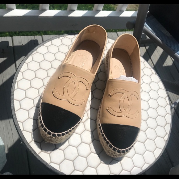 Beautiful size 36 Beige and Black Chanel Espadrilles. Sold out everywhere! Worn a few times. A timeless piece to add to your collection.
