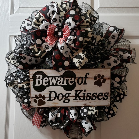 Adorn your door with this adorable wreath! Welcome all dog lovers friends and foes!