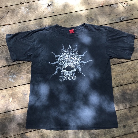 Aside from being faded, one sleeve unraveling a bit, the print cracking a little, and a pin-hole on the front, this shirt is in pretty great shape.