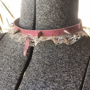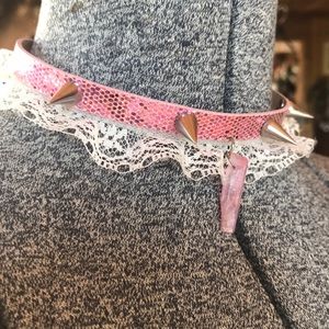 Hand assembled by me. Material is this weird rubber/fake leather material with shiny pink snakeskin like texture. Completely one of a kind item! ๐ธ