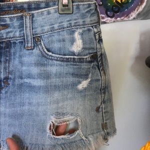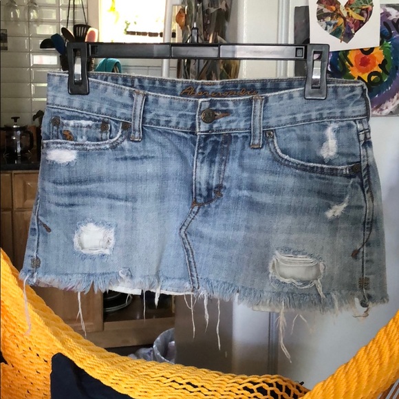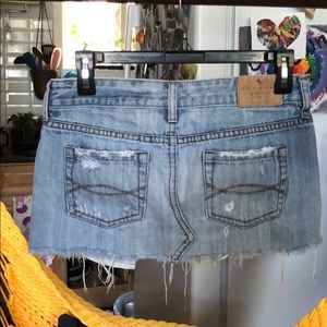 Waist: 15” Hip: 17” Rise: 9” Distressed mini skirt.