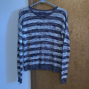 Super adorable striped blue and white knitted sweater. Perfect for fall/winter. wonky worn a few times for pictures and super comfortable! Comes from a smoke free home!