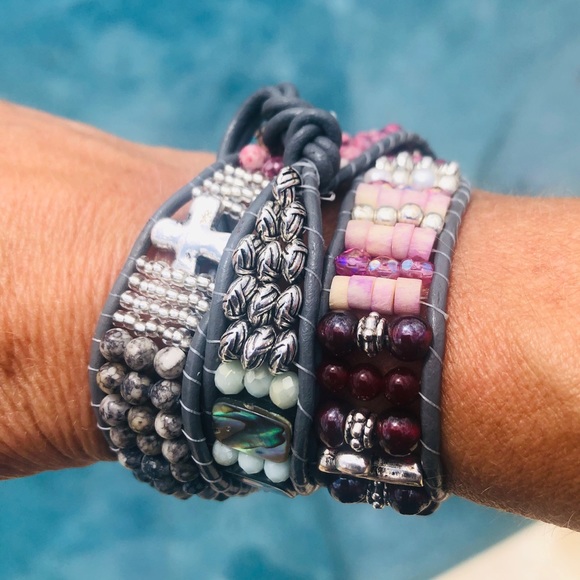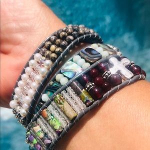 Wraps around 3x on leather cording