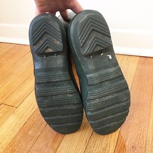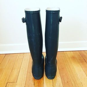 classic tall hunter green rainboots. excellent condition except for tear in right boot buckle