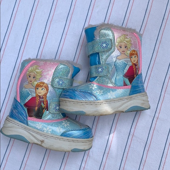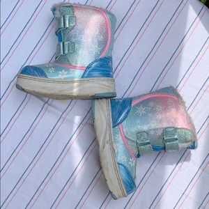 Blue frozen Ana and Elsa snow boots for your little girl! These are in great condition and have a Velcro closeure.