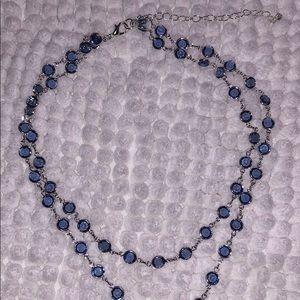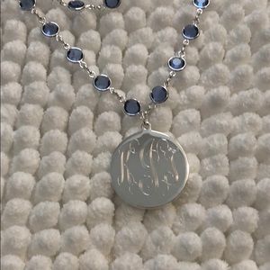 ‼️SOLD‼️ Sterling silver engraved medallion necklace with double strand of blue gemstones and lobster clasp. Brand new, never worn.