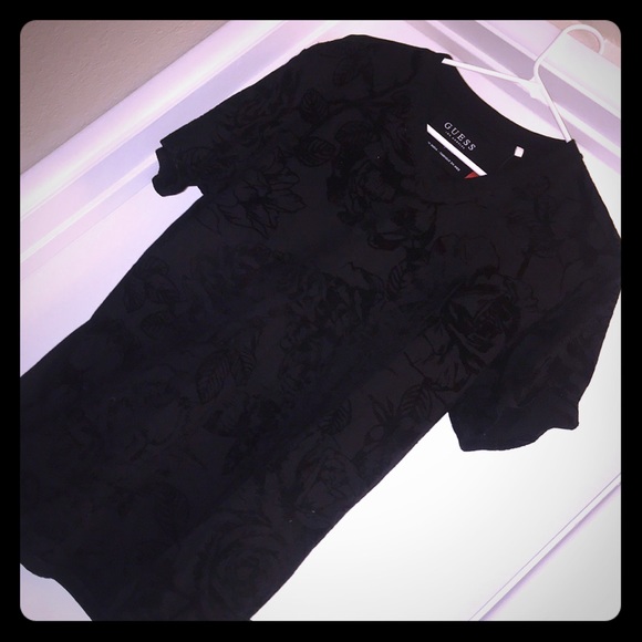 Guess Shirt. Black with velvet rose pattern. 🚫SOLD. ITEM NO LONGER AVAILABLE🚫