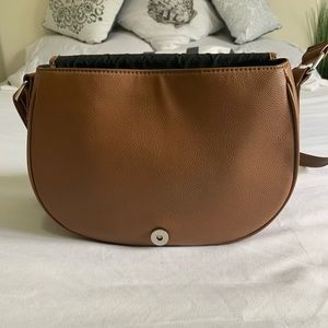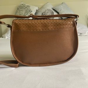 Bag has a very eye catching design. I git lots of compliment wearing it. Bag also has a front pocket/zipper.