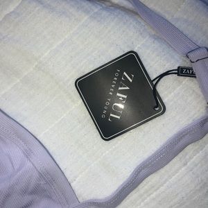 Top is a low cute style. Perfect for someone who has size A or B bra size