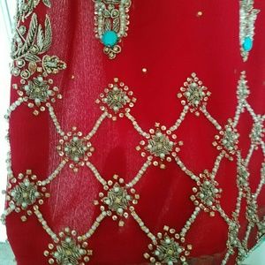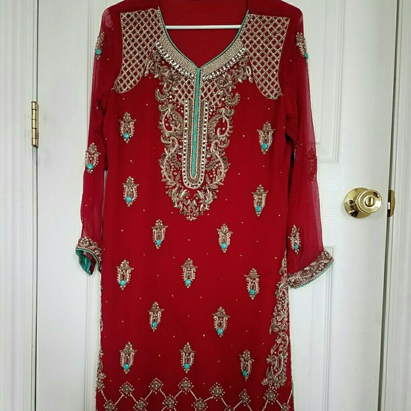 used once for wedding and in good condition bust size 40 in total, very heavy work, pretty in person, slightly wear under the arm side even not noticeable as it hides under the arm but not damage few rhinestone missing as it doesn't effect on dress even not noticeable, no marks / stains.