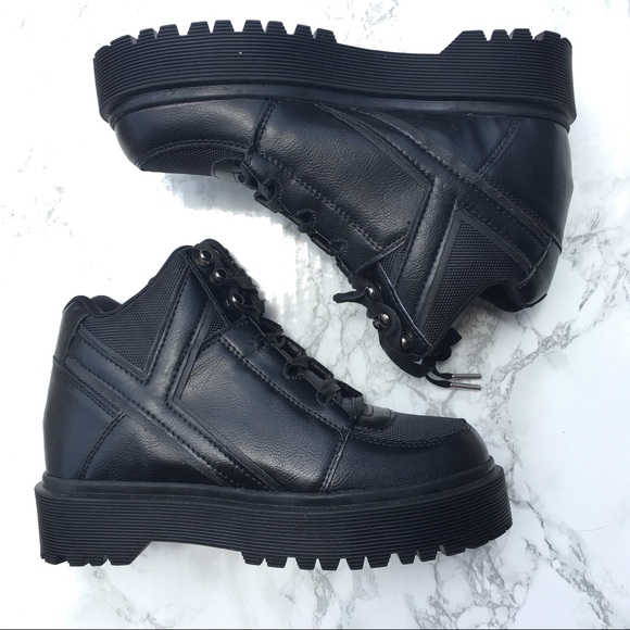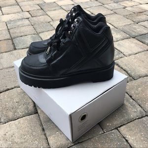 NIB NEVER WORN. YRU Qozmo Slayr Black sneakers. 1.5" platform/ 2" heel. True to size and extremely comfortable. Stomp around in these sleek platforms ๐