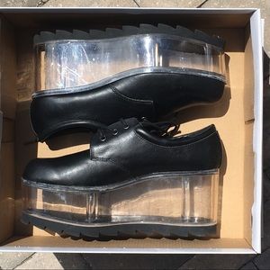 In good condition! YRU Qloud 2091 platform sneakers. The sole opens up so you can fill the clear heel with anything you want! Mega comfortable. Sold out everywhere! ๐