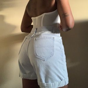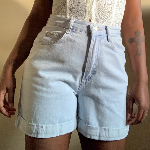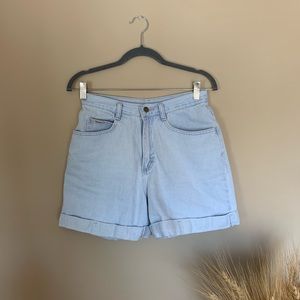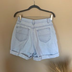 Vintage high rise light wash mom shorts. 5pocket denim with rolled hem.