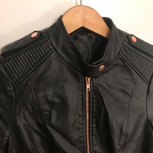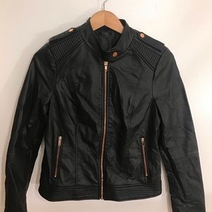 Black faux leather jacket with rose gold hardware. Good condition, worn lightly, size M.