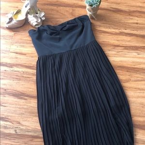 This maxi dress is very flattering! The top layer is sheer black to the floor with a slit on each side of your legs. The under layer is a short black skirt. Length from top to bottom hem is 50 inches.