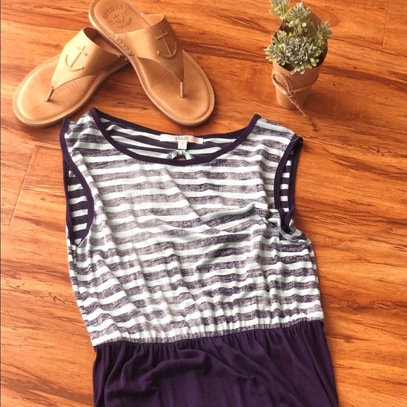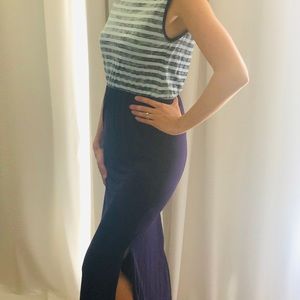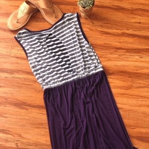 Comfortable maxi dress, has a slit on left side. Back of dress has a key hole opening. In great condition. Length of dress from top to bottom hem is 55.5 inches.