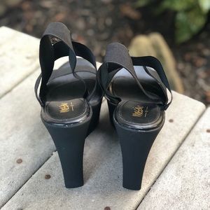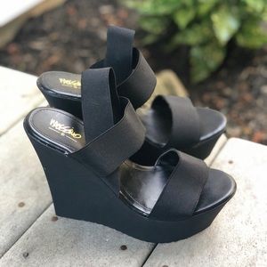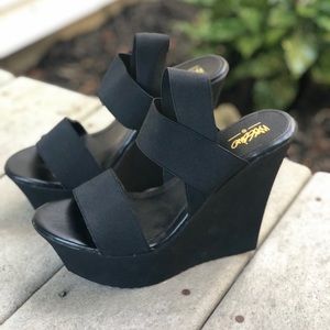 Womens Mossimo Supply Co. Black Wedges in a true size 8. NWOT. They’ve never been worn before. These feature nice elastic straps. Very sleek and sensual design!