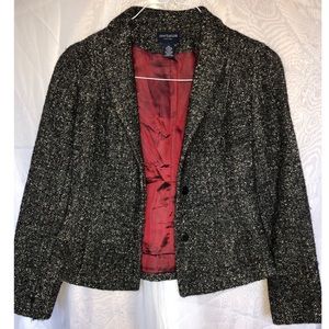 Charcoal colored blazer, with red silk inner lining!