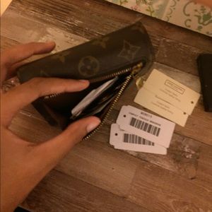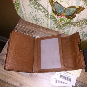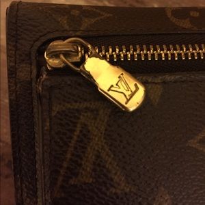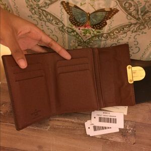Gently used, some flaws on the gold hard wear. In great condition , 9 card slots , picture id slot, money slot, and coin slot . Very spacious authenticity code shown in pic . All flaws shown in pic.