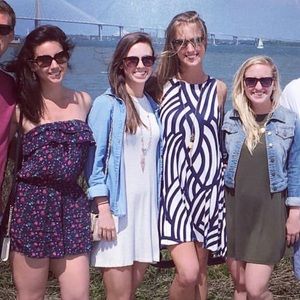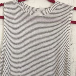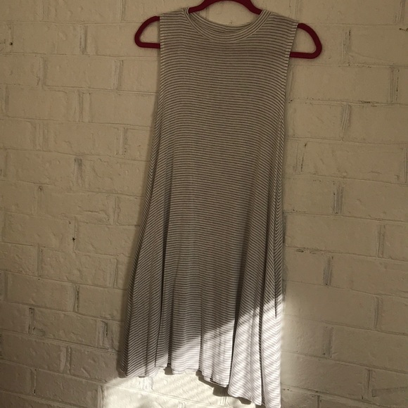 Very VERY comfy white and grey striped sleeveless dress with pockets.