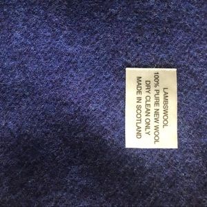 Gorgeous women’s Purplish-Blue wool scarf. Scarf was made in Scotland and is 100% Lambswool. Dry Clean Only. Excellent condition and free from stains, holes, snags, pilling and odors.
