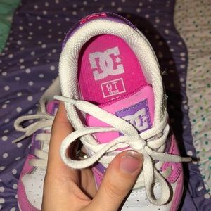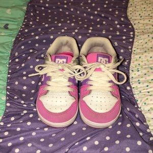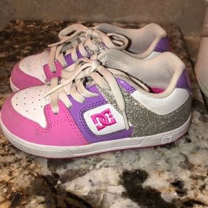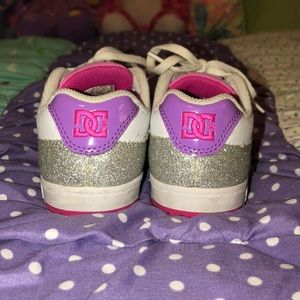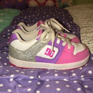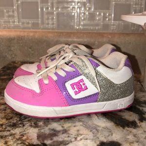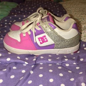 Cute DC Toddler shoes 9T, pink, purple and white with silver glitter!! These are super cute and stylish, be the only one in your school with these!! 💁♀️💗🦄👟💜
