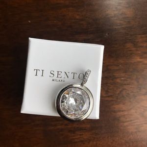 Sterling silver with center faux diamond and pave diamonds on clasp. Clasp opens in the back for easy changing between chains. Chain not included. Beautiful authentic piece that comes with the box!