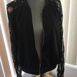 NWT guess jacket with embroidered sleeves black size xl but can fit large also very pretty