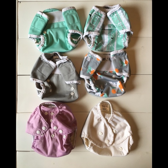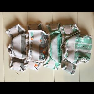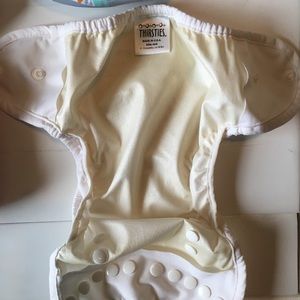 1 one size AIO. Elastics are just beginning to relax, one EBF stain that has not been sunned