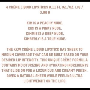 4 creme liquid lipsticks. Only swatched once. Comes in original packaging (a little stained bc it was sitting in my makeup case).