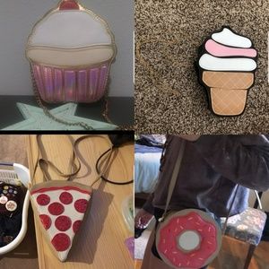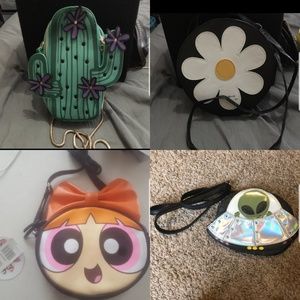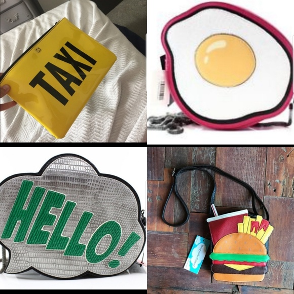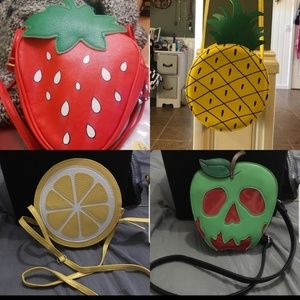 I have a bunch of novelty purses I'd like to get rid of. The brands are Kate Spade, Sleepyville Critters, Sam Edelman and Betsey Johnson while some have no name. Please message for more info. These are not my pictures. They are pics from when I bought them. Willing to sell separately or bundled. Some of them have imperfections. For example the pineapple has blue marks on the back from a pair of jeans. . price will reflect damage. There are a total of 16.