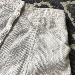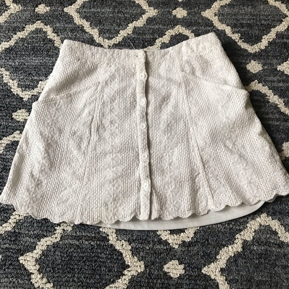 Super cute white mini skirt, has two pockets, buttons at the front. Cute details