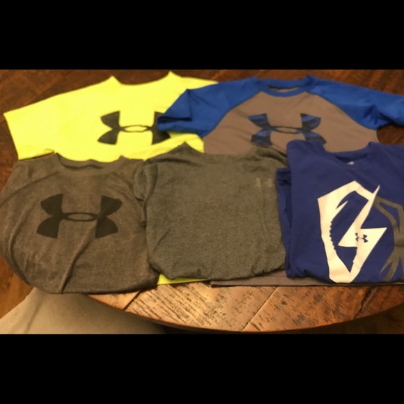 This post is for five boys under armour shirts. Three are sz medium other two are small, but they honestly all are very close in sz.