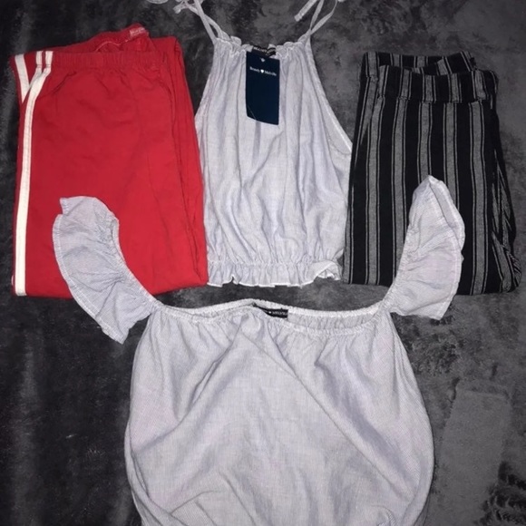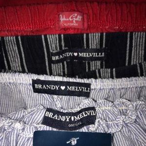 Bundle of 4 Brandy Melville/John galt clothing pieces. Two pants and two tanks. Brandy tilden striped pants worn a few times but still in good condition and the sweatpants from john galt only worn 3 times, both pants were originally 35$ each. And the two tanks are brand new.