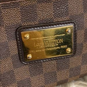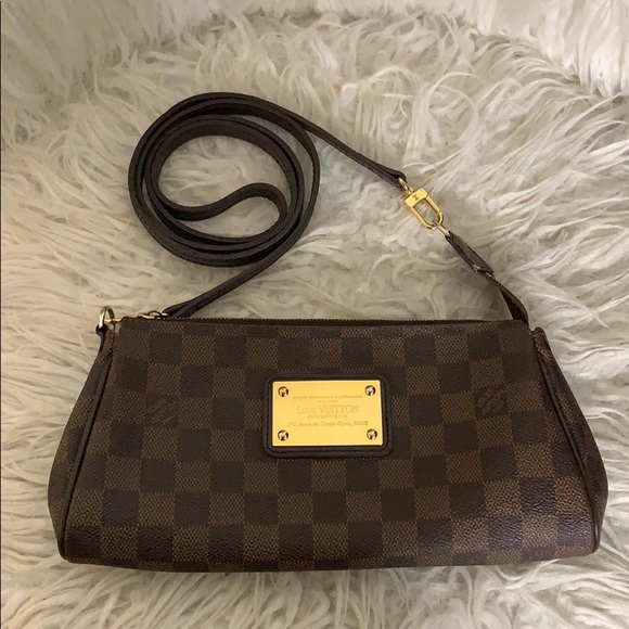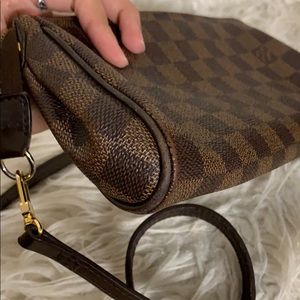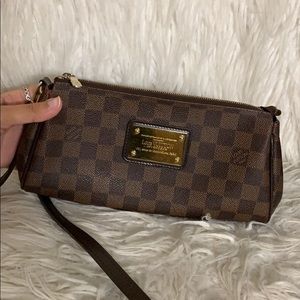 100% authentic LV eva clutch damier ebene. Preloved but still in really good condition. Has some minor defects as pictured and some scratches on the metal part. No box or dust bag! Clutch and strap only. No trades please :) cross listed