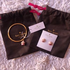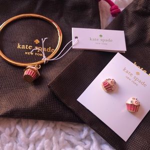 Kate Spade cupcake earrings and matching bracelet! Both new with tags and comes in their original linen bags