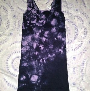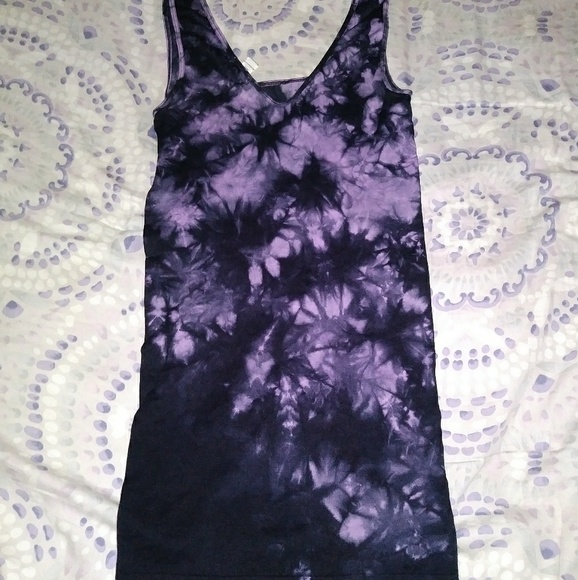Super super stretchy tye dye bodycon tank dress. Purple and black. Size medium. Could fit a small medium or large in my opinion. Never worn. Really cute mini dress. Can be dressed up or down. Wear in the summer alone or fall with a leather cropped jacket and some knee/thigh high boots and kill it!! No rips or stains.