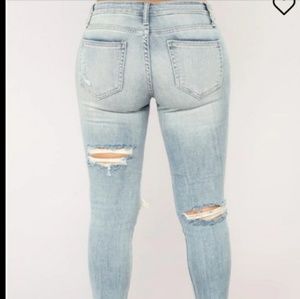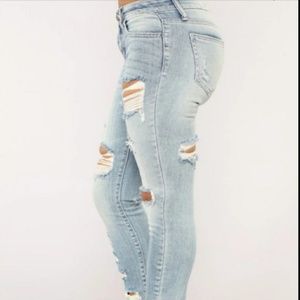 I friggin luv these jeans. The wash, the distressing, just everything. Iv just never found myself reaching for them oddly enough. They're not as stretchy as most of the Fashion Nova jeans tho. But they do have a durable feel to them. Size 5. Could fit a loose 3 if ur looking for more of the boyfriend fit.