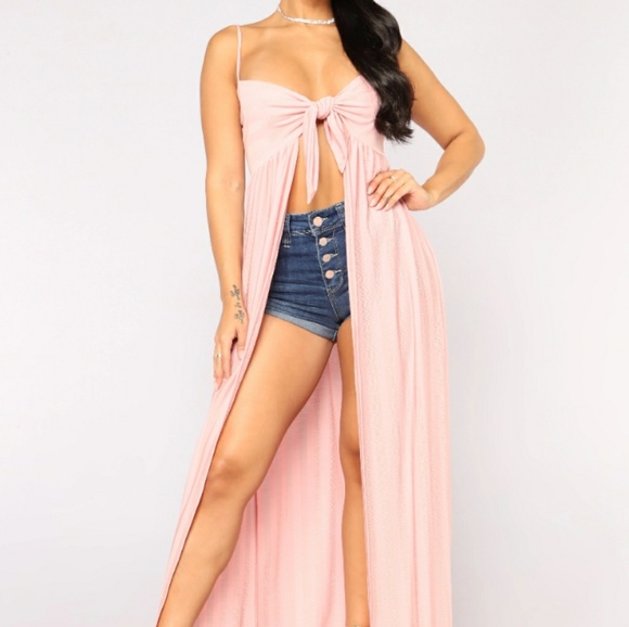 This top is different than any other top in your closet. Beautiful mauve color floor length tie front top. Pair this with shorts or some jeans and kill it anywhere u go. I just never got a chance to wear it and its too cute to just be sitting in my closet. Size small. Stretchy and flowy. Just a really unique piece.